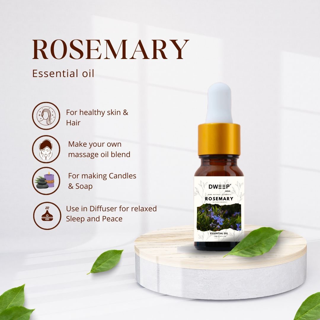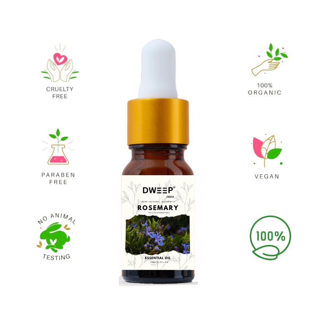 The pleasant, therapeutic perfume of Dweep India Rosemary Essential Oil will energise your mind, body, and soul and melt away any fatigue or stiffness in your muscles.