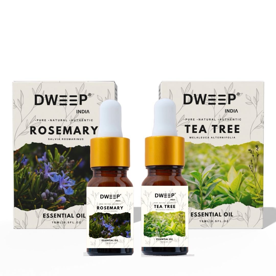 Dweep India Rosemary & Tea tree Essential Oil, 100% Pure, Natural & Undiluted for Hair Growth & Moisturising Skin 15 ml x 2 (30ml)